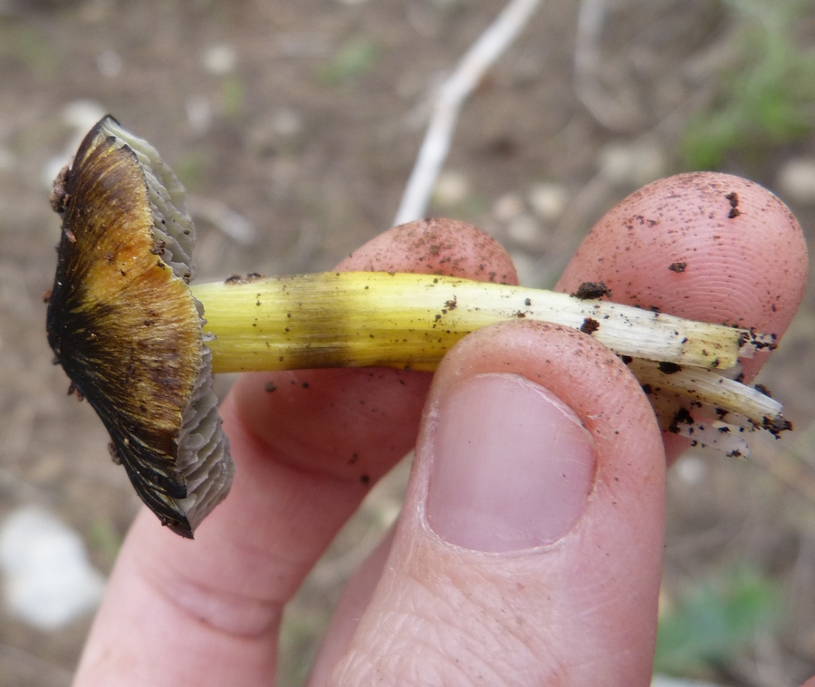 הדפים בתחילה יושבים, עם הזמן נעשים חפשיים, רחבים, עבים, שעוותיים, בתחילה חיוורים, לבנבנים, צהובים או כתומים, זיתיים-אפרפרים, משחירים בהבשלה.