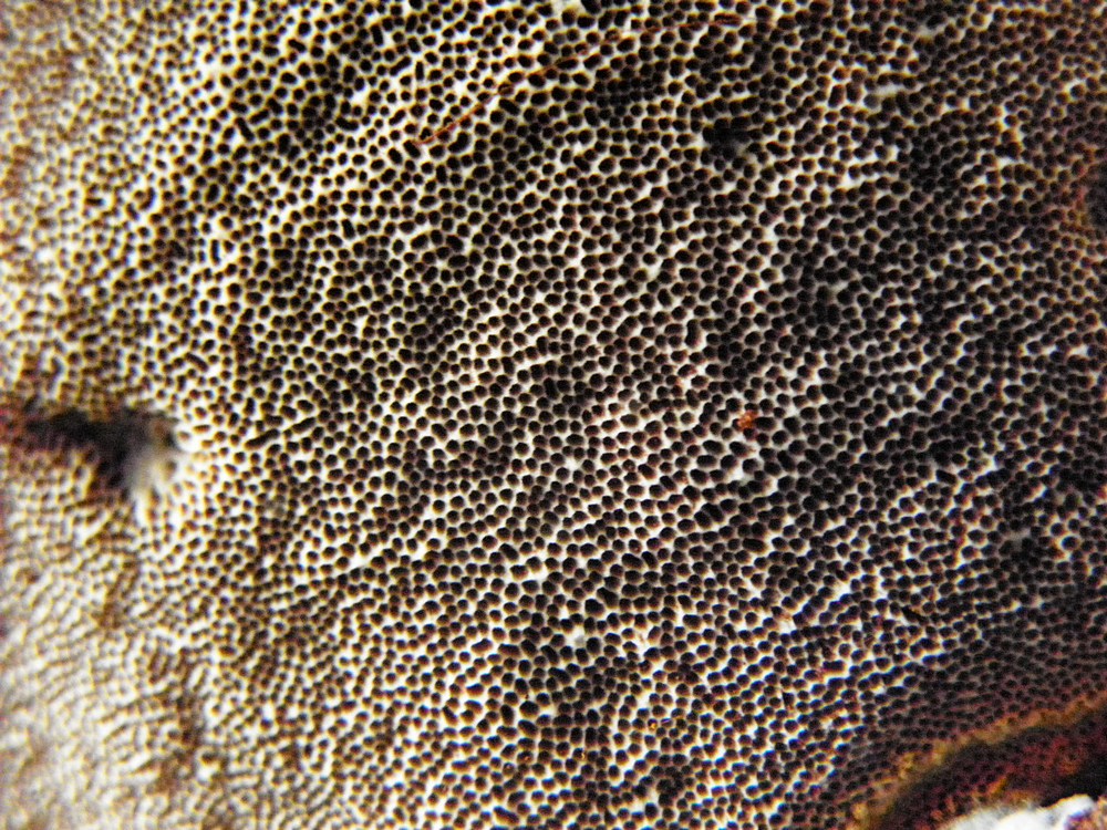 הנקבים מעוגלים או מצולעים, 1-3 יחידות על 1 מ"מ, צבעם חלודי או חום-צהוב. אורך הצינורות עד 8 ס"מ, צבעם כצבע הנקבים.