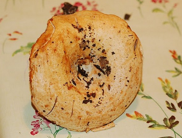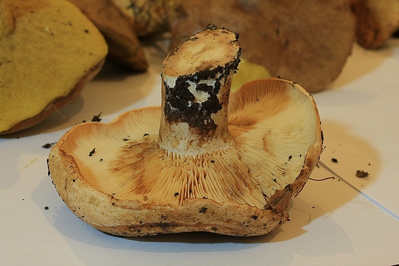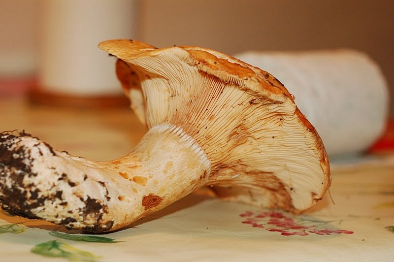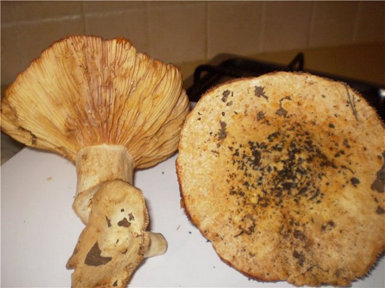 הבשר מוצק, קשה, לבנבן והופך צהבהב, הנוזל חלבי לבן ולא משתנה, טעמו של הבשר חריף, צורב, ללא ריח.