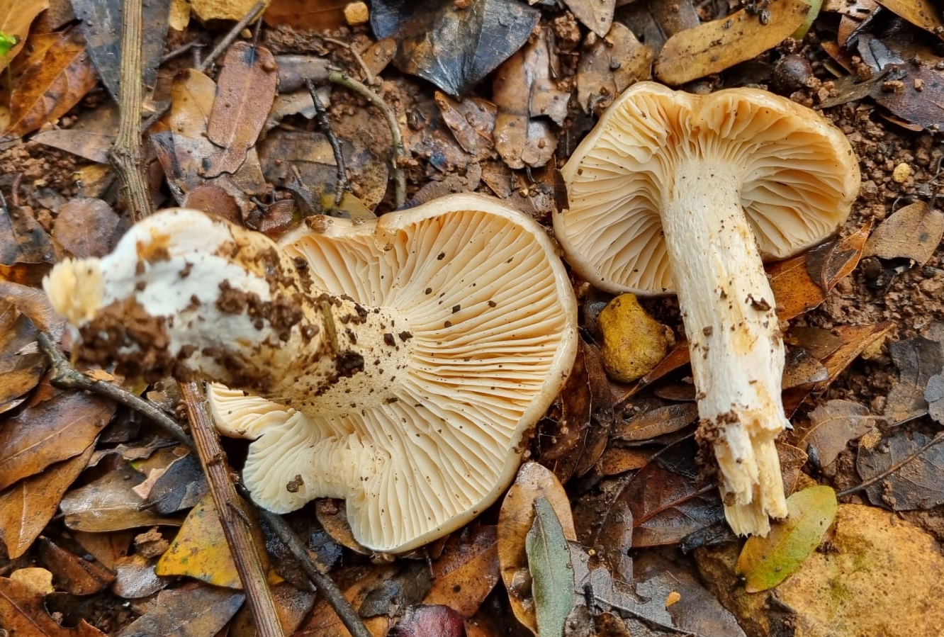 הדפים אינם צפופים, יורדים לרגל בקשת קטנה, רחבים ומעוגלים באמצע, צבעם קרם-חיוור או קרם-ורדרד.